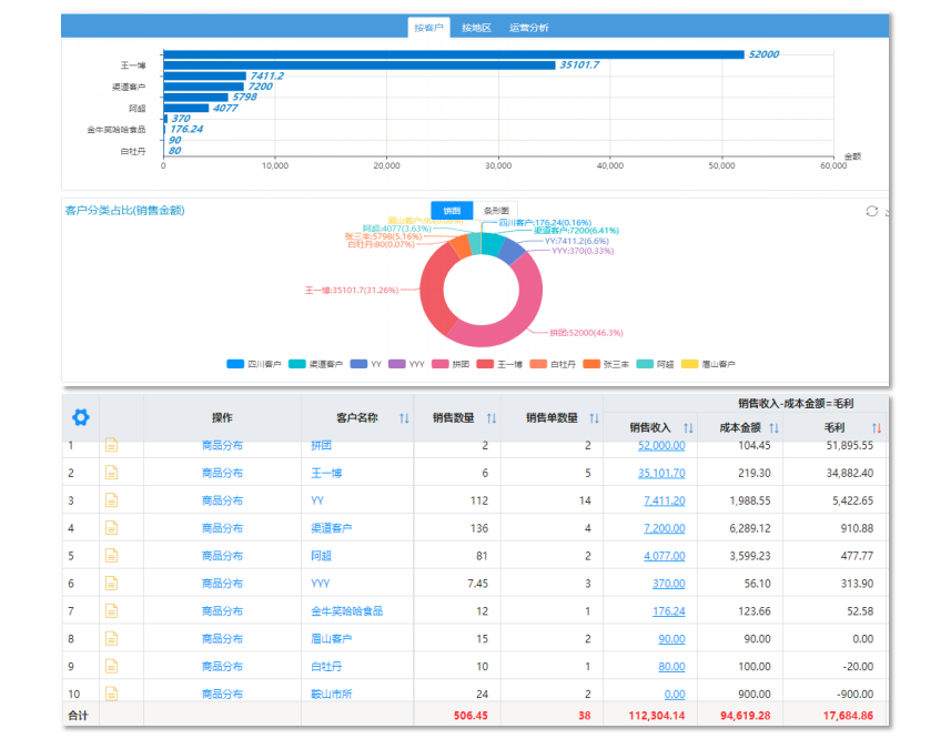 我们的云进销存ERP营销管理一体化系统,能帮助商贸企业轻松进筛选合作的客户,通过销售数据分析报表,查看客户分类的占比,做好客户等级划分,达到差异化的维护,聚焦核心客户打造社群。